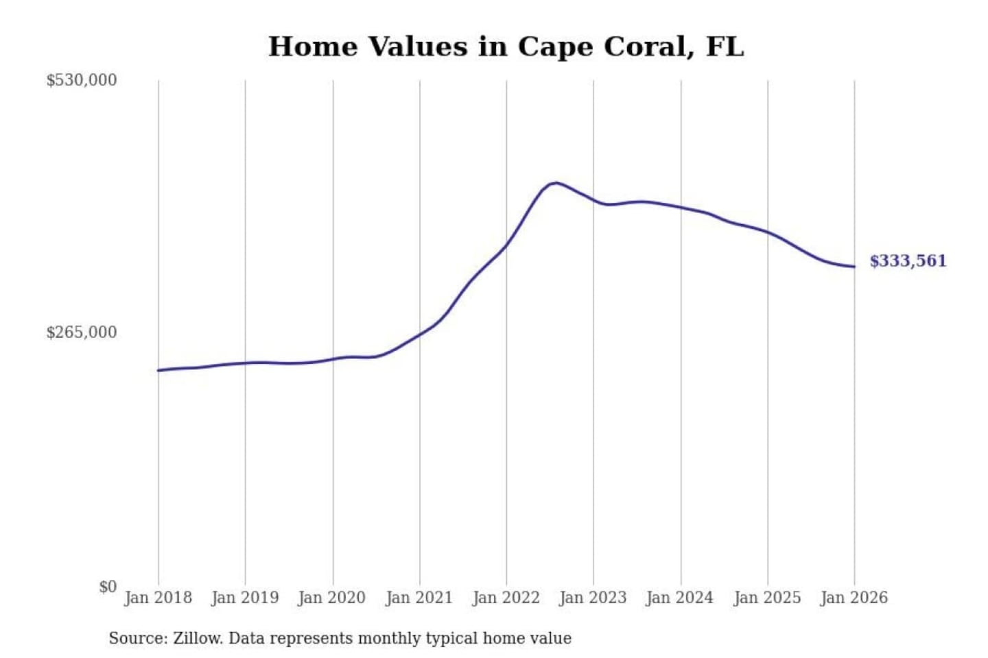 Cities with the fastest-growing home prices in the Cape Coral metro area