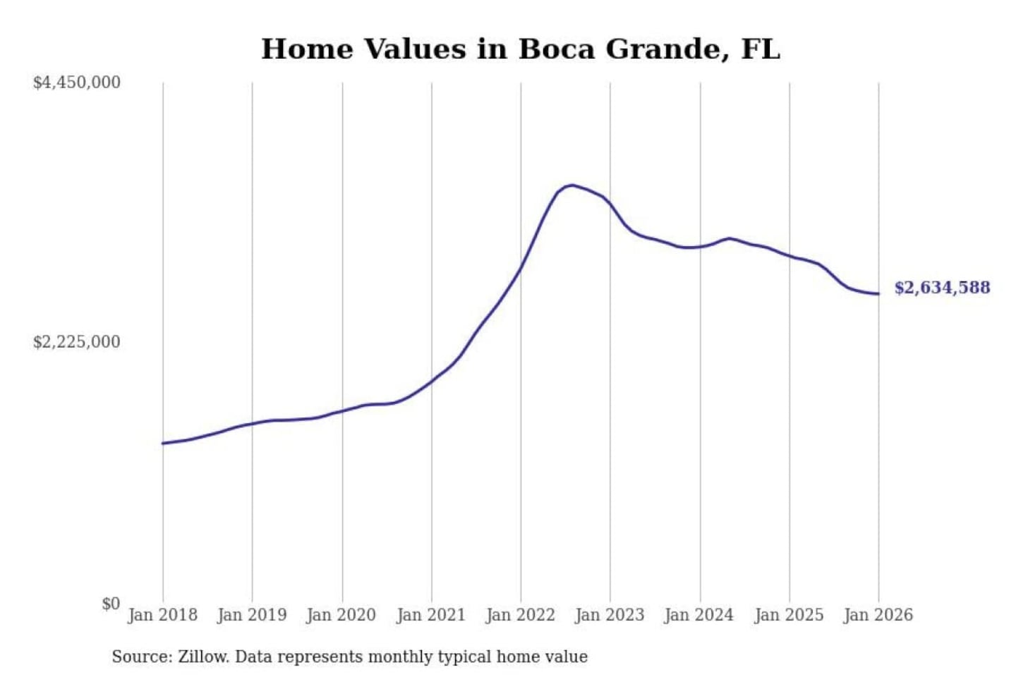 Stacker compiled a list of cities with the most expensive homes in the Cape Coral-Fort Myers, FL metro area using data from Zillow. Charts show the monthly typical home value since January 2018.