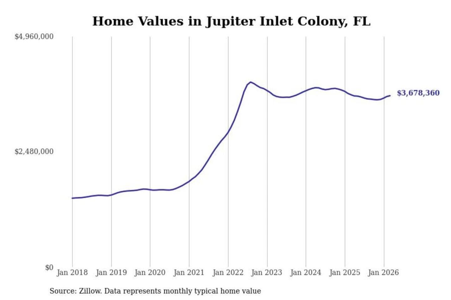 Stacker compiled a list of cities with the most expensive homes in Florida using data from Zillow. Cities are ranked by the Zillow Home Values Index for all homes as of March 2026. The charts in this story were created automatically using Matplotlib.