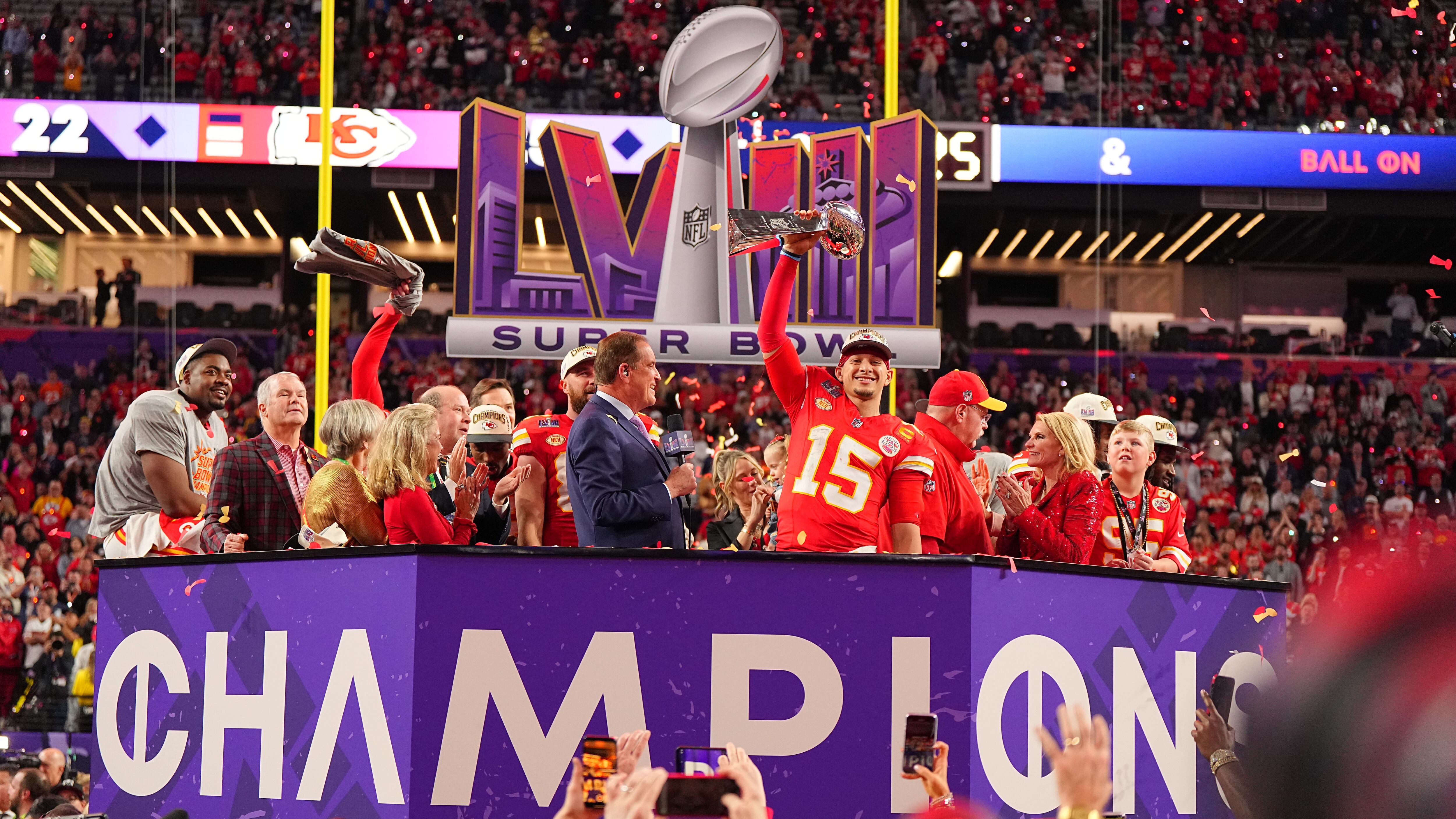 Patrick Mahomes and the Chiefs mounted a game-winning drive in overtime to beat the 49ers 25-22 at Allegiant Stadium in Las Vegas on Sunday night. It marked the Chiefs' second-straight Super Bowl win, which led to Mahomes' third Super Bowl MVP award. The game was the first to be held in Las Vegas, and it marked the third that Tony Romo and Jim Nantz called together on CBS.